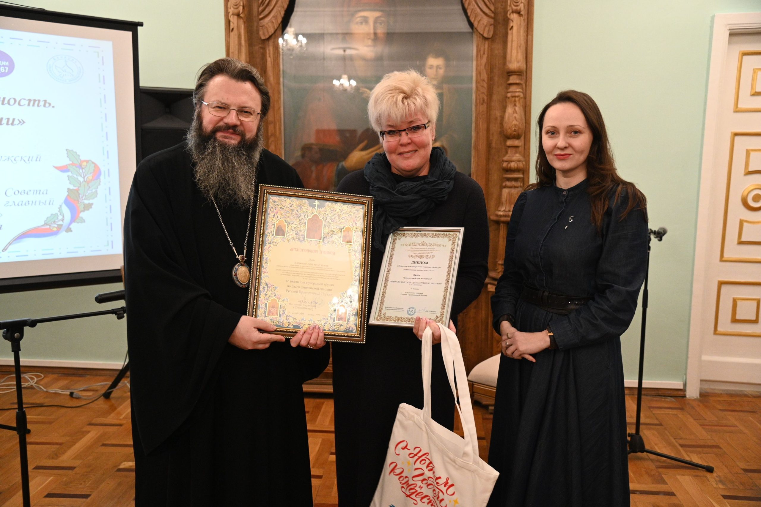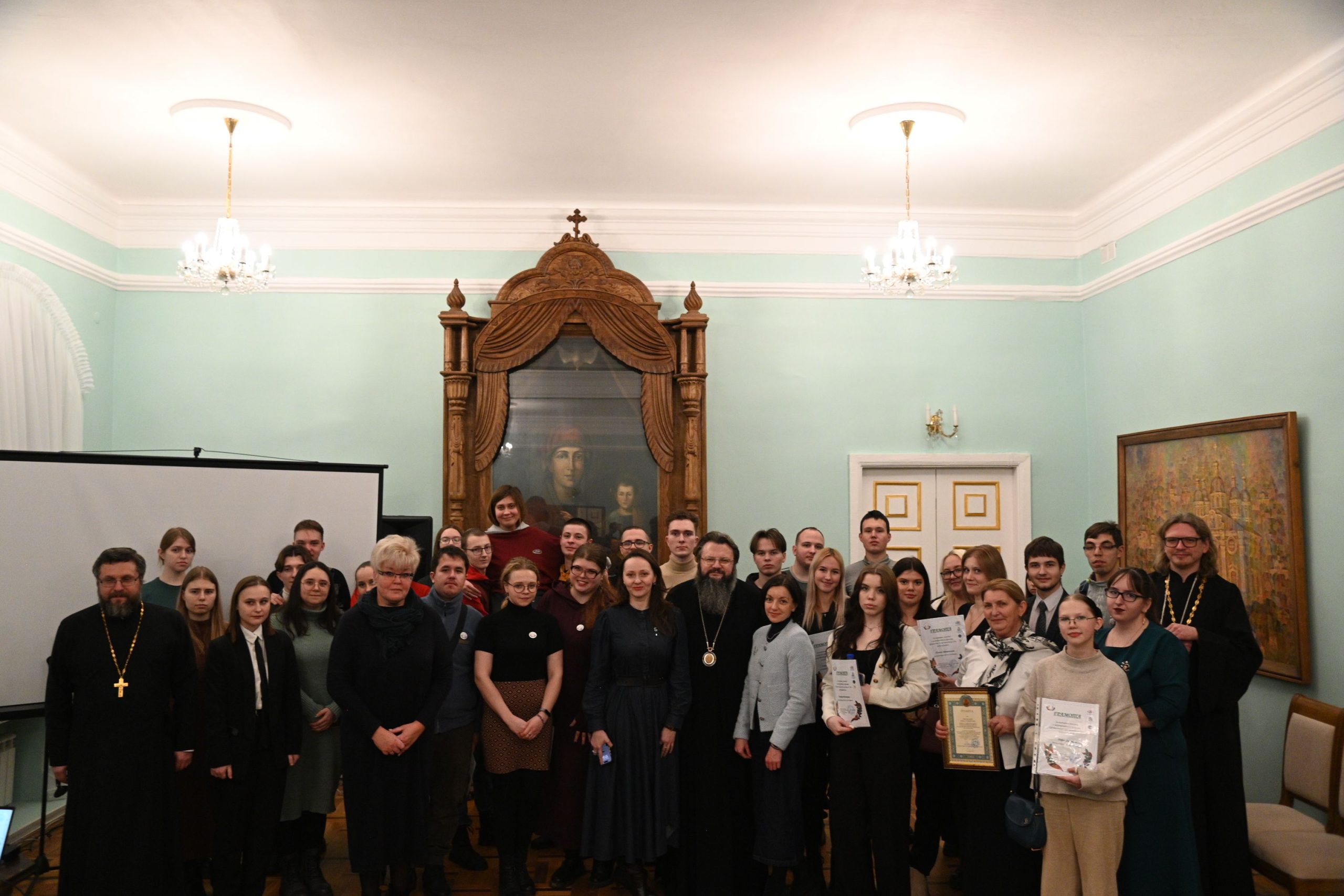 От отдела Смоленской епархии по взаимоотношениям Церкви с обществом и СМИ за активное участие в реализации проекта студенты и преподаватели были награждены благодарственными письмами.
