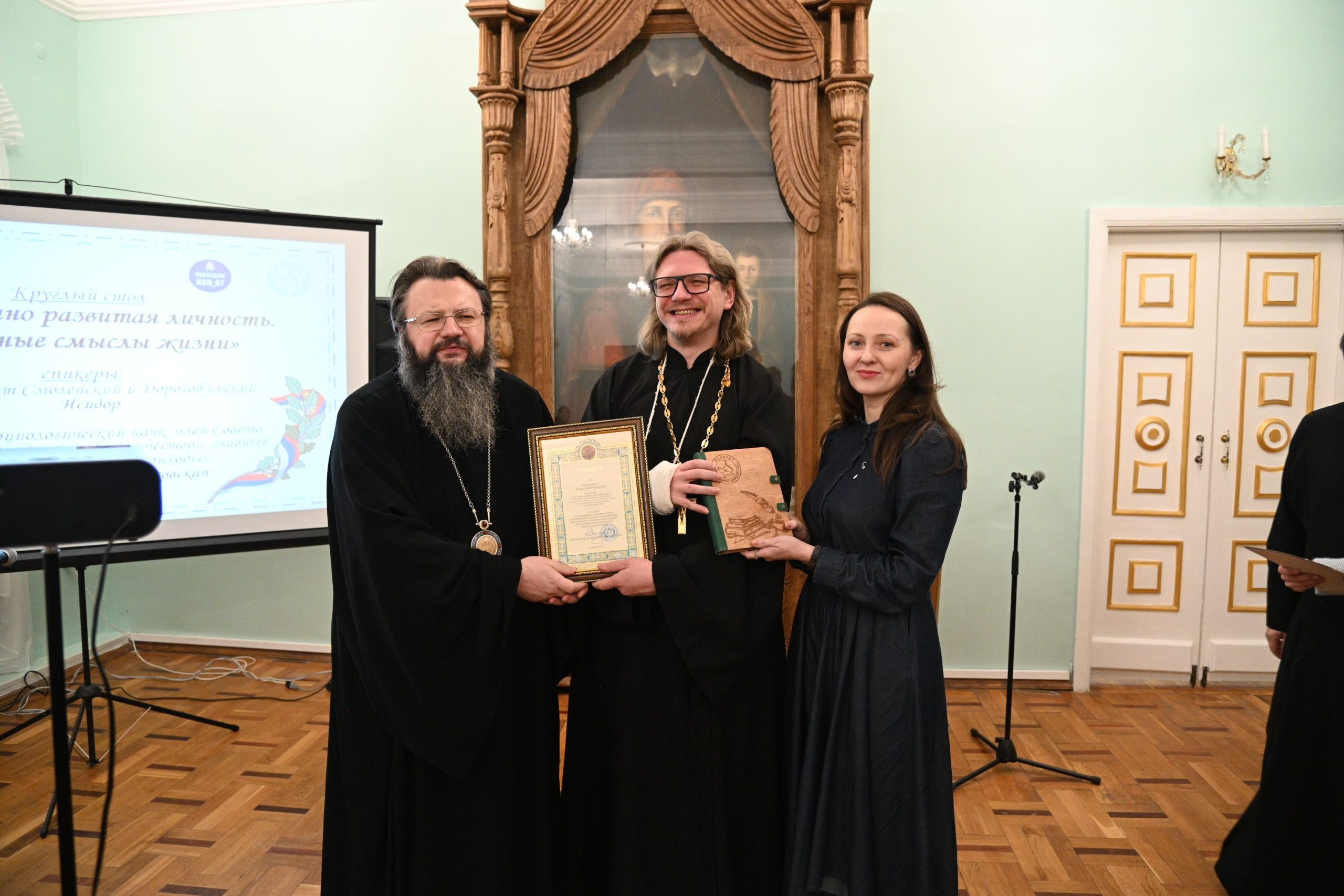 23 декабря 2024 года в Тронном зале Смоленского епархиального Управления состоялся круглый стол на тему «Гармонично развитая личность: истинные смыслы жизни». Это — итоговая в 2024 году встреча студентов-участников проекта «Ценностный код молодежи. 2.0».