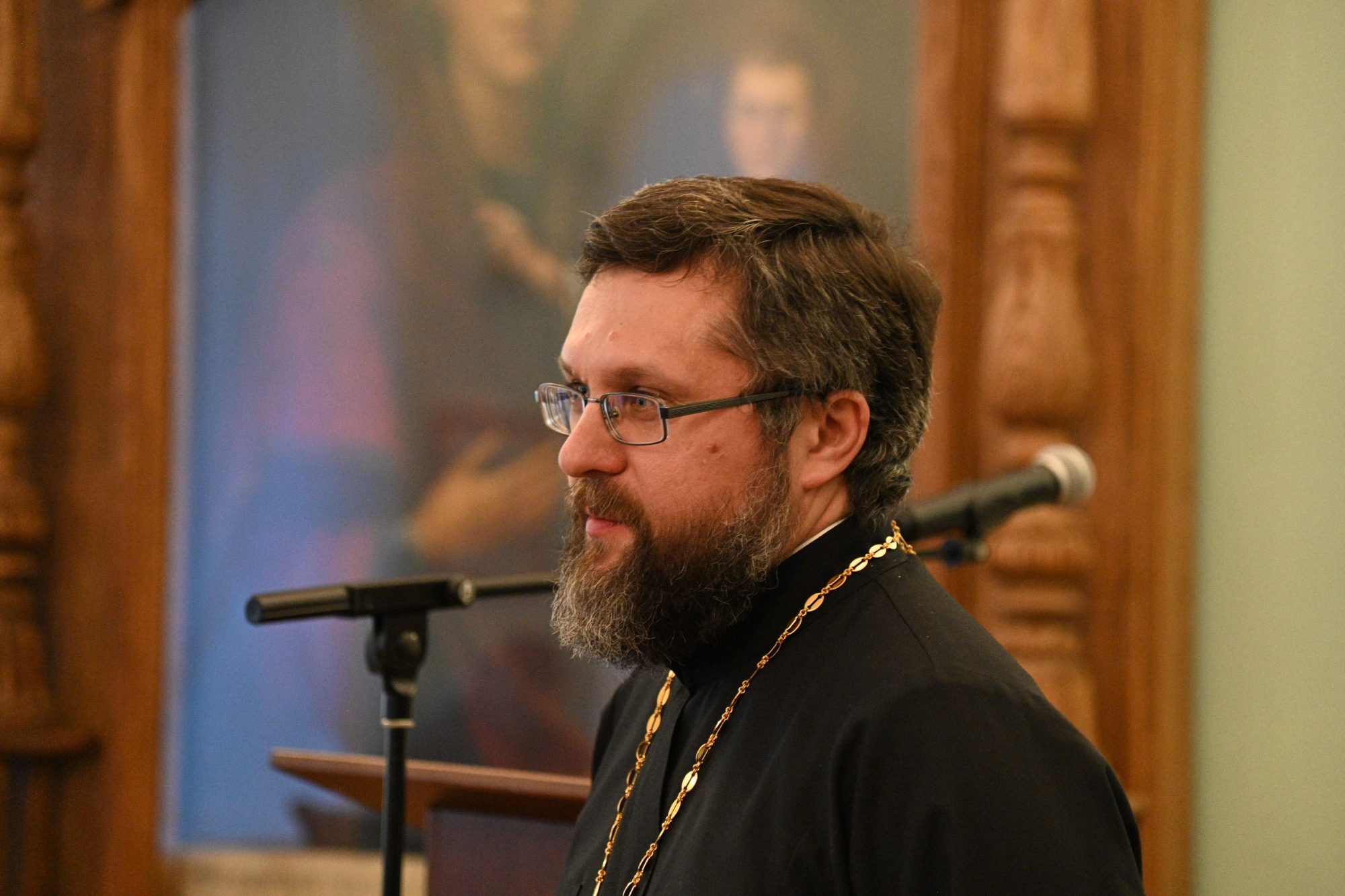 «Сегодня главное время, которое мы с вами должны уделить нашей встрече, по праву должно принадлежать Евгении Евгеньевне Жуковской – нашему ведущему во всей Русской Православной Церкви специалисту в области медиапроектов, журналисту с большой буквы. Человеку, который модерирует очень многие масштабные, не только общецерковные, но и государственные проекты, и советнику Комитета Совета Федерации по конституционному законодательству, и доценту Сретенской духовной академии. Просим Евгению Евгеньевну взять слово».