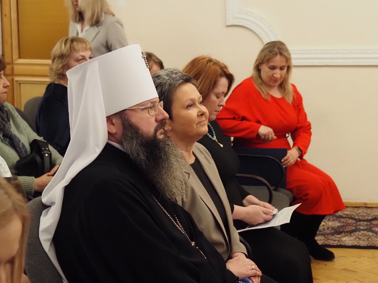 В завершение работы конференции ее участников поприветствовал митрополит Смоленский и Дорогобужский Исидор, ректор Смоленской Православной Духовной семинарии. Он обратился с архипастырским словом, в котором подчеркнул важность обсуждаемых тем и поздравил всех с успешно проделанной работой. Также всех собравшихся приветствовала Министр здравоохранения Смоленской области Виктория Николаевна Макарова.