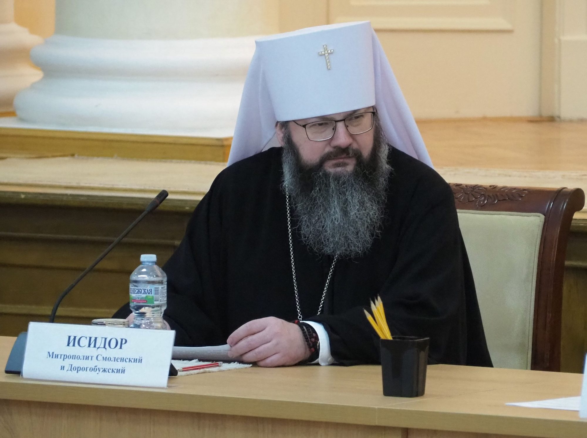 Со словами приветствия к участникам Парламентской встречи обратился глава Смоленской митрополии митрополит Смоленский и Дорогобужский Исидор.